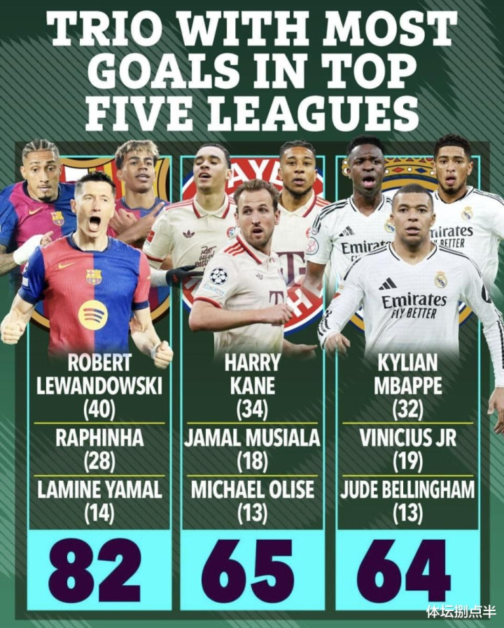 巴萨的三东说念主组以82球领跑,莱万、拉菲尼亚和亚马尔的组合最为平衡;拜忍让皇马则更依赖中枢球员,凯恩为拜仁孝顺了34球,姆巴佩为皇马打入32球。比拟之下,巴萨的全面性和多点吐花让他们在紧迫端更具上风。