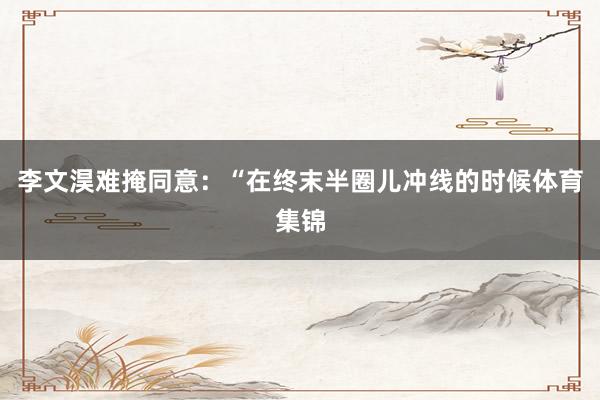 李文淏难掩同意:“在终末半圈儿冲线的时候体育集锦