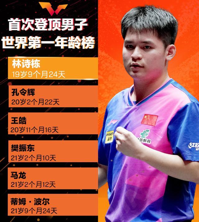 不到20岁的年龄,林诗栋就一经成为了宇宙排行第一,还登上世一年龄榜,与孔令辉王皓这些前辈们并列。