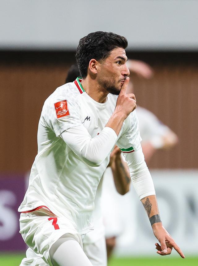 2月13日,伊朗队球员莫宾·德甘庆祝进球。 新华社记者 刘大伟 摄