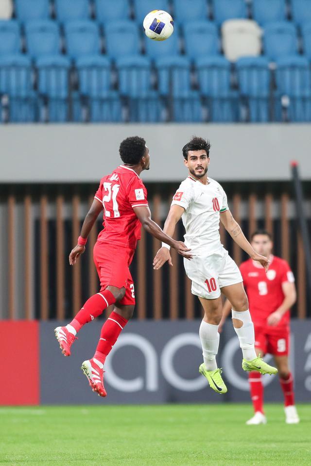 2月13日体育最新信息,伊朗队球员莫宾·德甘(右二)头球破门。 新华社记者 刘大伟 摄